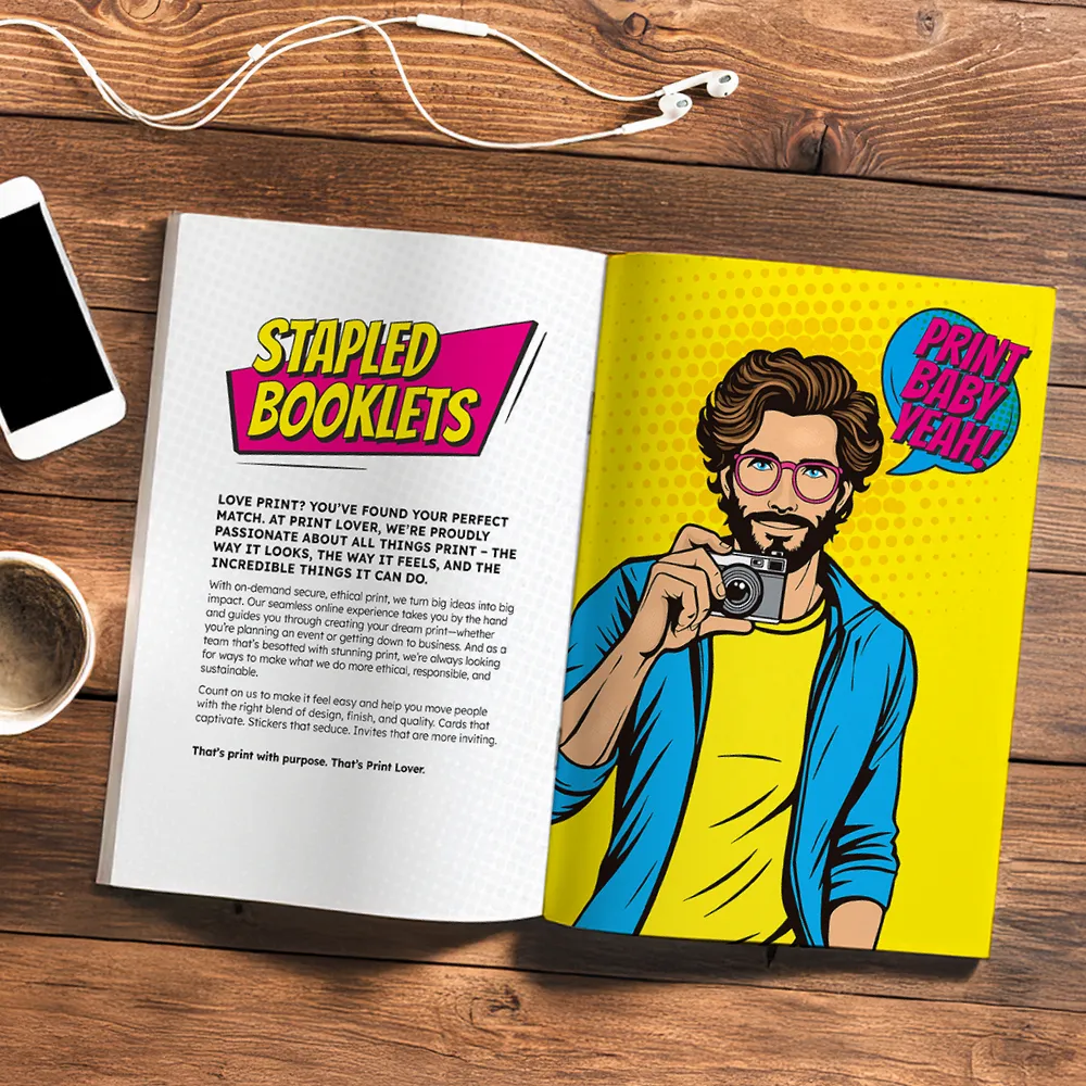 Common uses for stapled booklets include product catalogues, company reports, employee handbooks, event itineraries, marketing materials, and educational resources. They're also great for service brochures, health and safety handbooks, travel guides, and non-profit informational booklets. If you're an event planner, real estate agent, retailer, or in marketing and advertising, stapled booklets are a fantastic way to communicate with your audience.